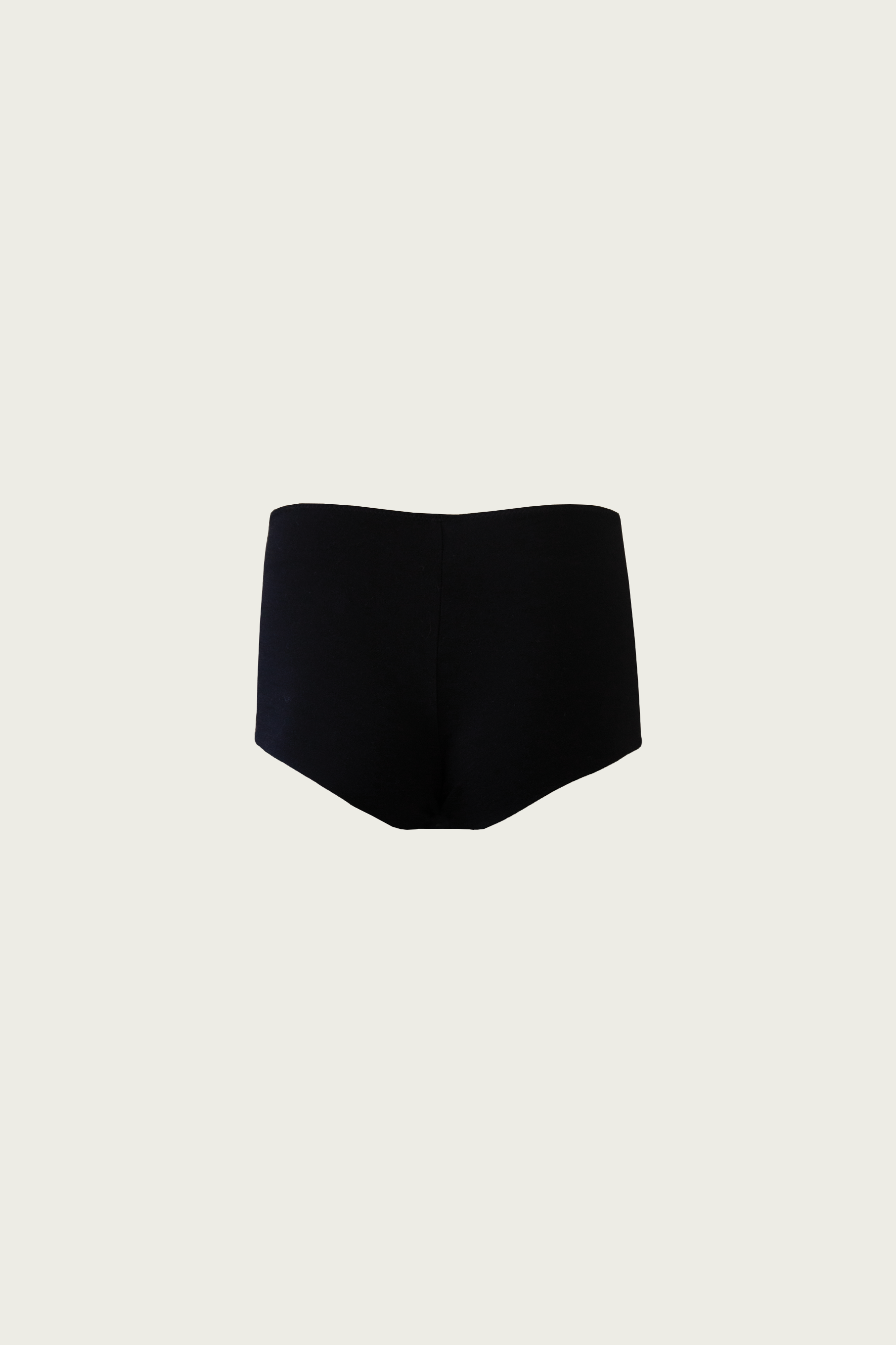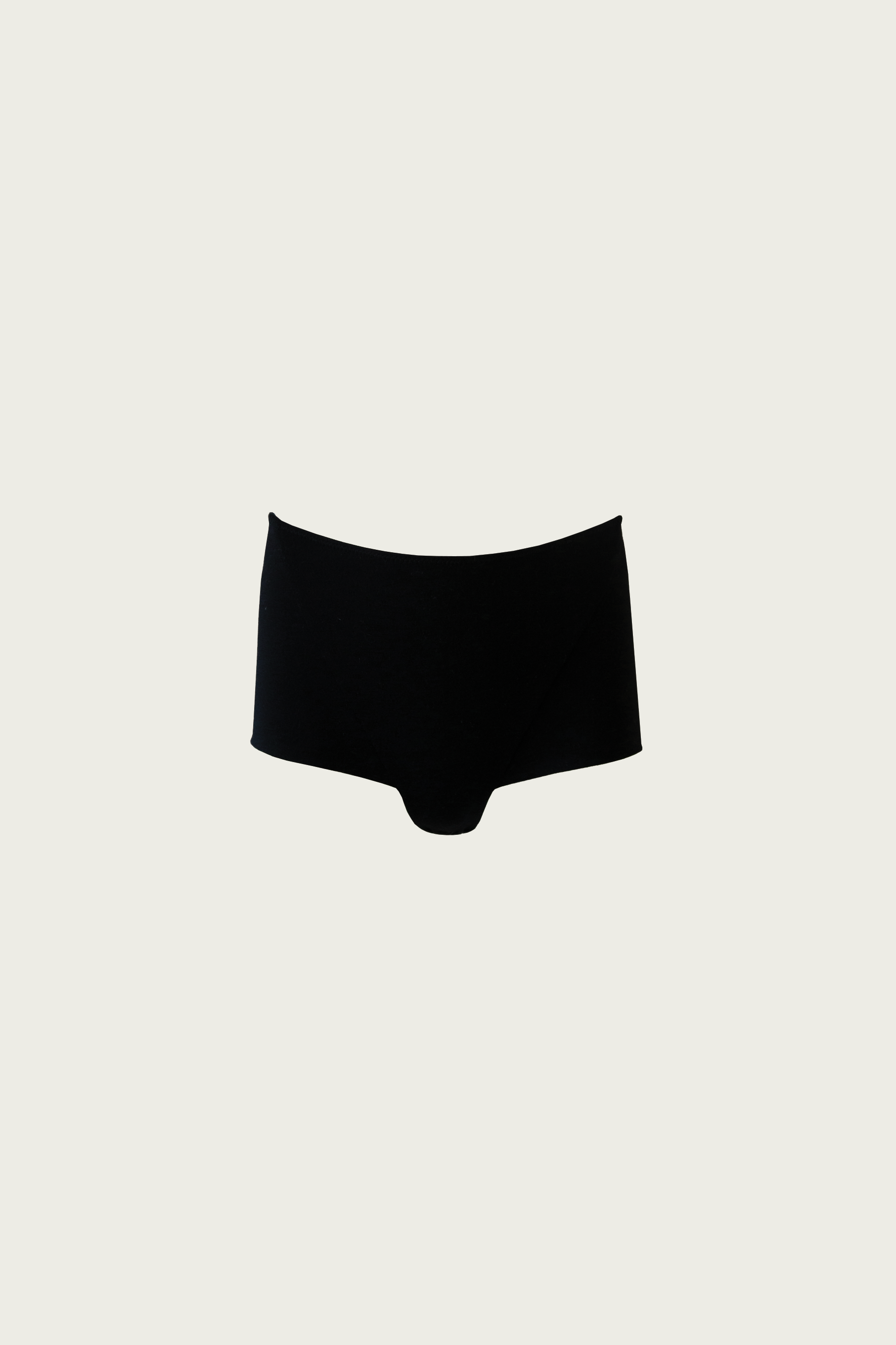 High waist and low cut brief made from the softest merino jersey. Double layered front and back. Back has fold along outer edge to minimise V.P.L (visible panty line). Front has no external elastic to minimise irritation against bikini line. Centre back seam stops before lower gusset for comfort. Back provides medium coverage, while centre seam allows for shaping of the backside.