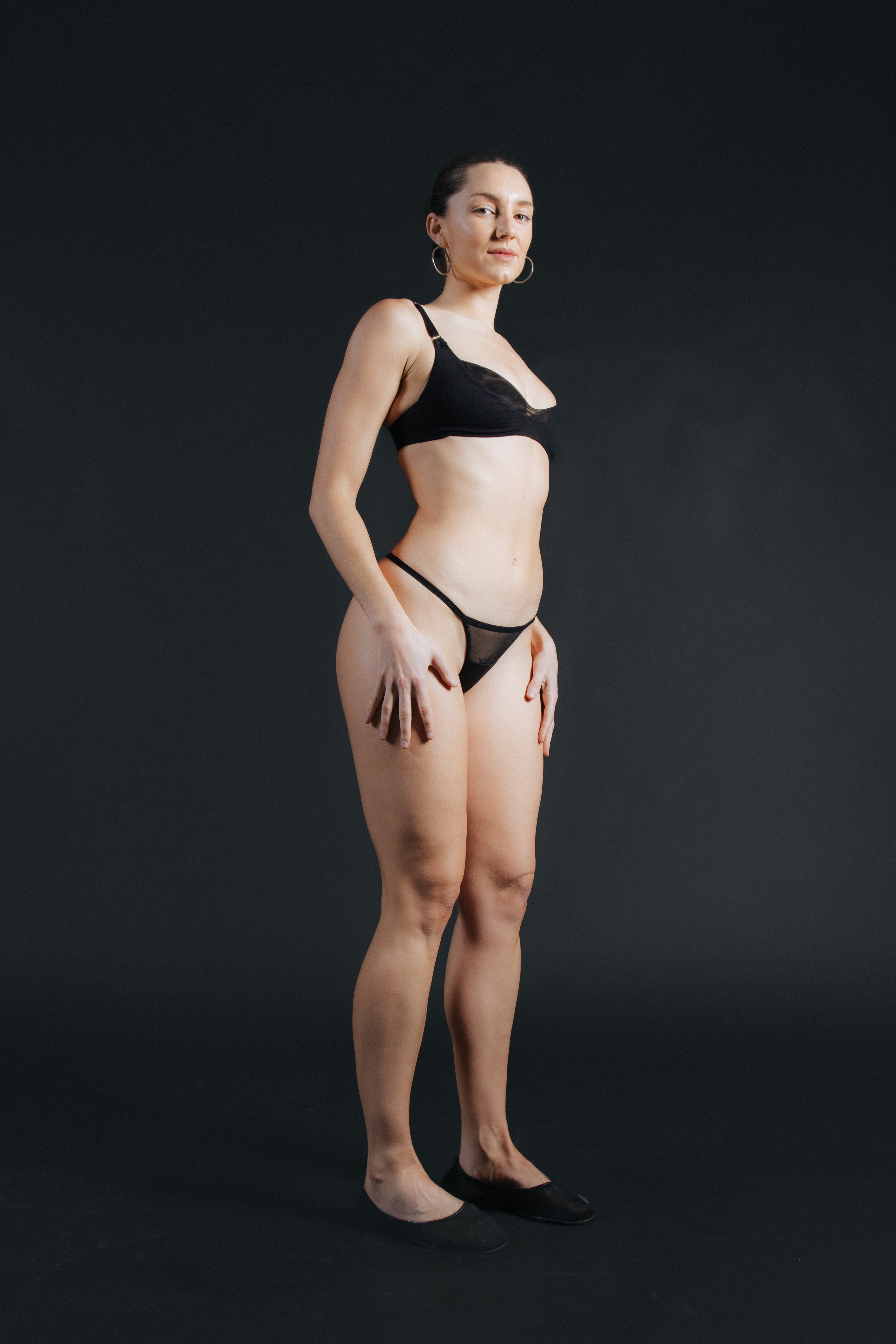 Minimal mesh g-string brief with straps sitting low at the hips or pull them higher at the waist. Nickel-free O-ring at centre back. Extended length double layered organic cotton gusset for comfort and breathability. Please note, the gusset area of our briefs are cotton on both the inner and outer layers. We have designed them this way for complete care of one of your most sensitive organs. You can read more about our reasoning behind this [here].