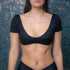 Bikini top based on our favourite Geraldine style, with ties across the back for an adjustable bust. Made with ECONYL®  regenerated nylon with SPF 50+ sun protection, providing the piece with strength, complete coverage, and high chlorine resistance. Double layered style, shaped under the bust, with cropped double layer sleeves. Edged with concealed rubber elastic internally, to hold the swimsuit in place.