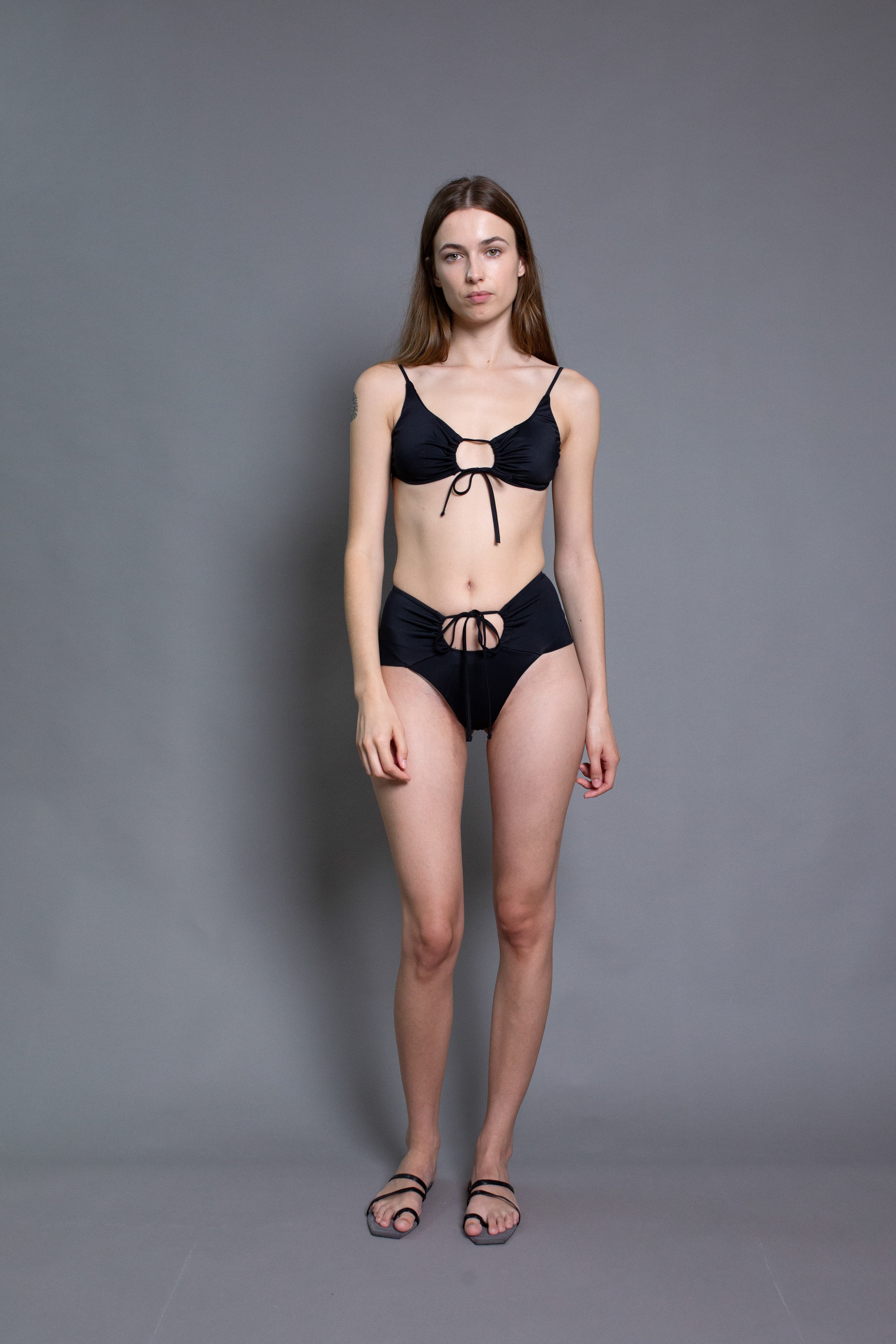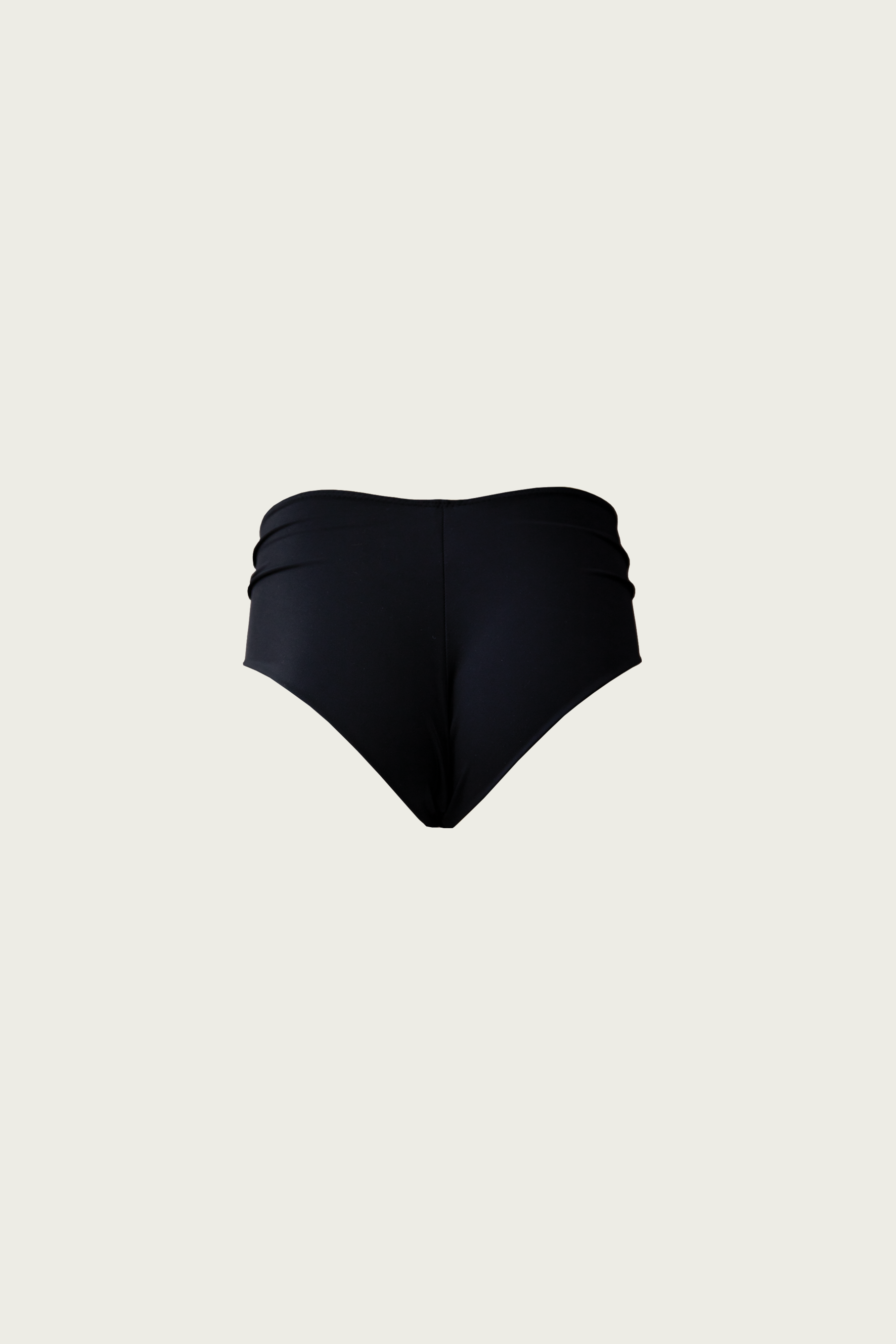 Based off our signature "Easy Mid" brief shape, our Mid Tie French Swim briefs feature a rouched centre front, allowing you flexibility with the height of the waist. Made with sustainable ECONYL®  regenerated nylon with SPF 50+ sun protection, providing the piece with strength, complete coverage, and high chlorine resistance. Double layered front and back. Back has fold along outer edge for a seamless finish. Front has no external elastic to minimise irritation against bikini line. Centre back seam stops before lower gusset for comfort.