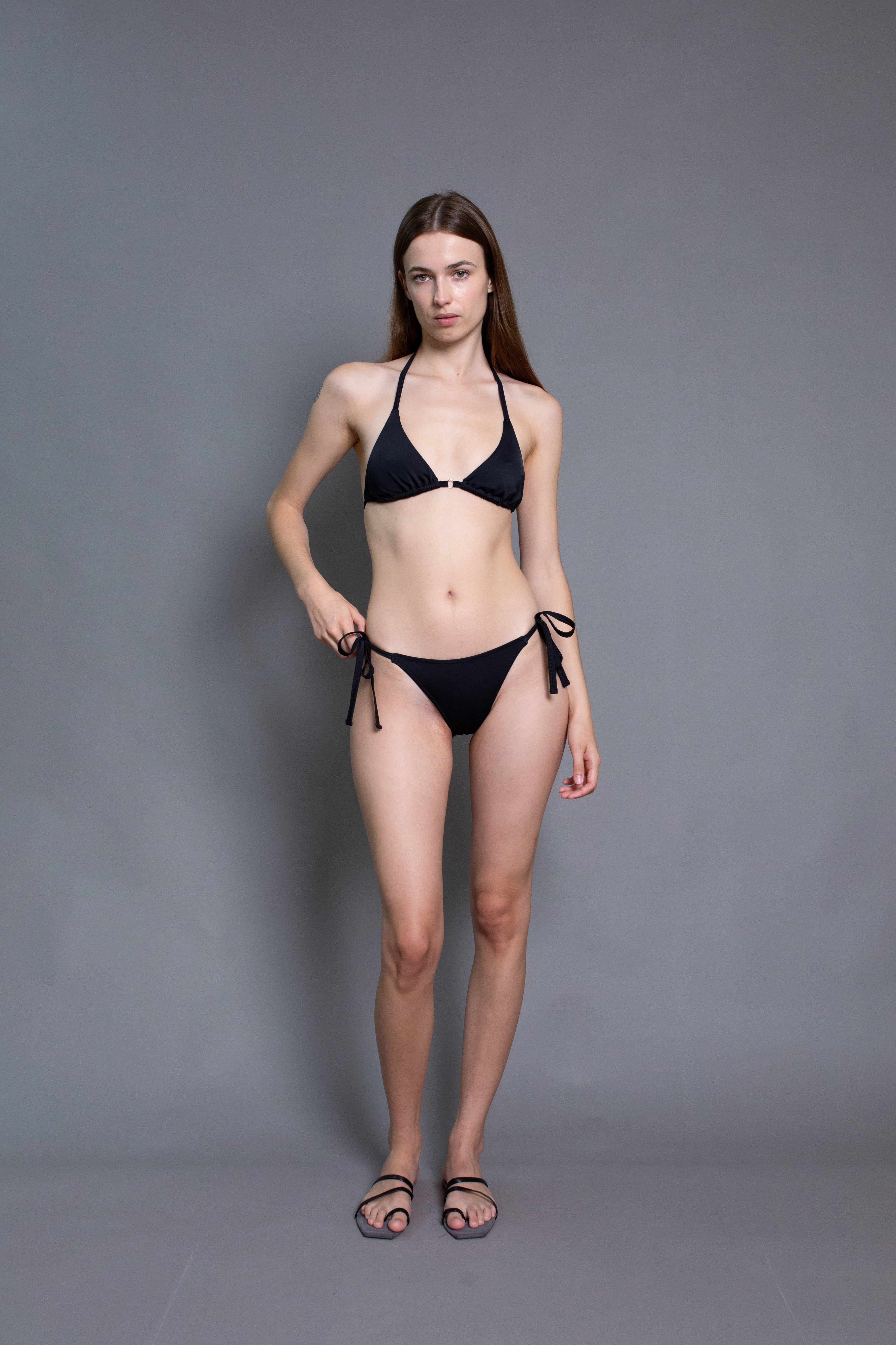 Side Tie Swim briefs made with ECONYL®  regenerated nylon with SPF 50+ sun protection, providing the piece with strength, complete coverage, and high chlorine resistance. Double layered front and back with full backside coverage. Bikini edges have no external elastic to minimise irritation against bikini line. (Additional images to come)